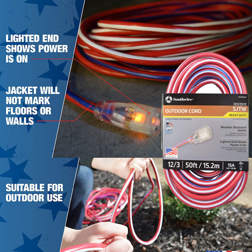 • MADE IN THE USA : Display AMERICA’S COLORS on the jobsite with this patriotic striped contractor grade extension cord