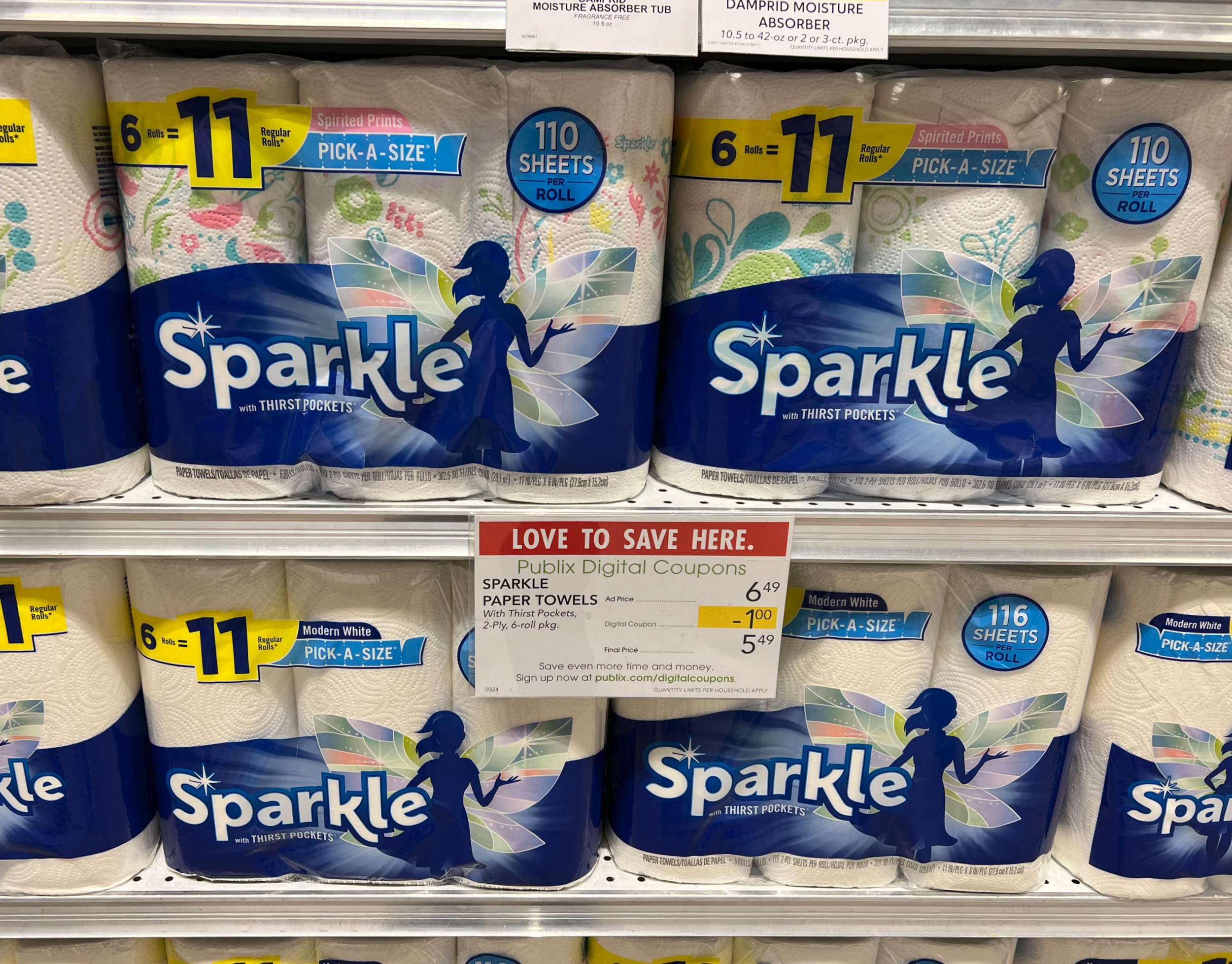 –$1/1 Sparkle Paper Towels, With Thirst Pockets, 2-Ply, 6-Roll (Publix Digital Coupon)