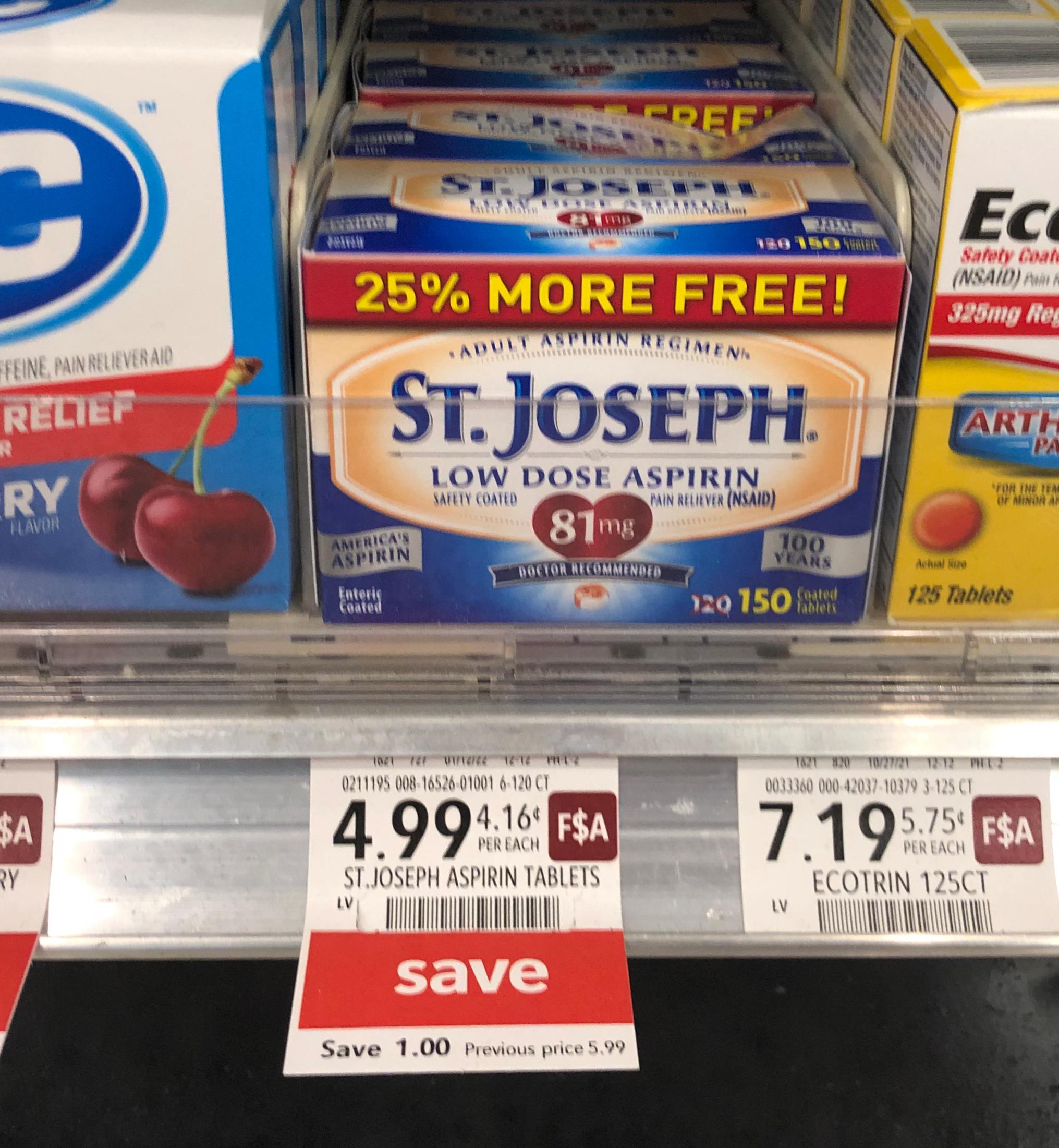 St. Joseph Low Dose Aspirin, 150 ct, $4.99 (reg $5.99)