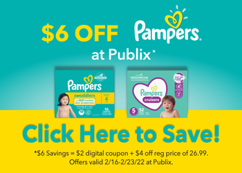 Find all the Pampers Diaper value boxes on sale $4 off plus there is a stacking $2 off digital coupon you can load straight to your Publix account.