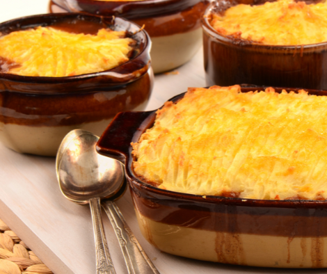 3. To make the topping, peel the potatoes and cut into chunks. Add them to a saucepan and cover with water. Boil until tender. Drain completely and mash with a potato masher. Add the milk and mash until your desired consistency is reached.