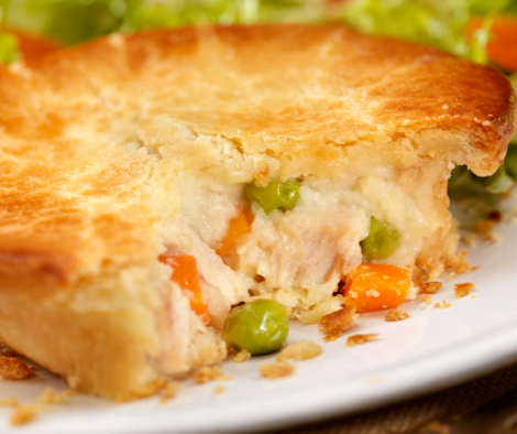 3. If you’re using bottom crusts, press a crust into each of your 5 pie pans (I used disposable). Ladle the chicken mixture evenly between the pans and top with the remaining crusts. Press the bottom and top crusts together at the edges and crimp.