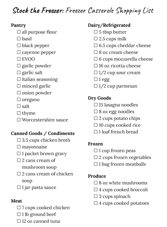 Stock the Freezer: Freezer Casserole Recipes (with shopping list!)