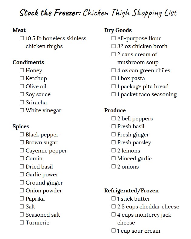 Stock the Freezer: Freezer Chicken Thigh Recipes (with Shopping List!)