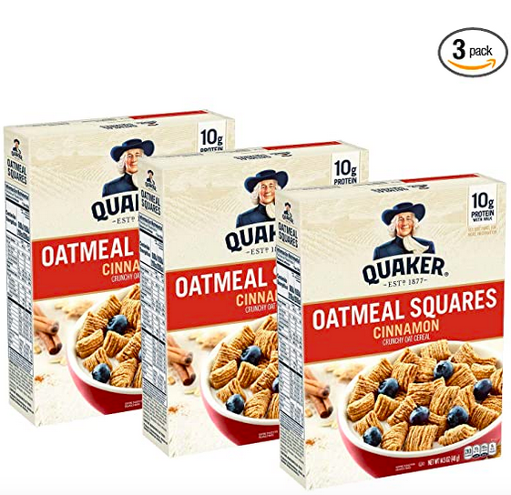 Get this Quaker Oatmeal Squares Breakfast Cereal, Cinnamon, 14.5 Ounce (Pack of 3) for just $6.70 shipped when you clip the 20% off e-coupon and checkout through Subscribe & Save!