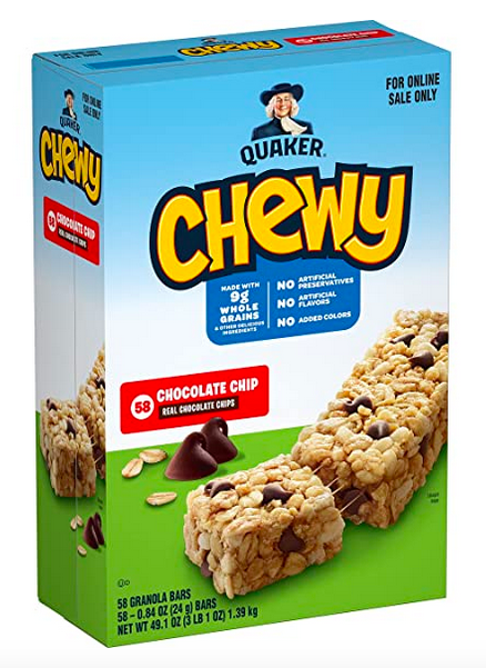 Get this Quaker Chewy Granola Bars, Chocolate Chip, 58 Count (Pack of 1) for just $9.30 shipped when you checkout through Subscribe & Save!