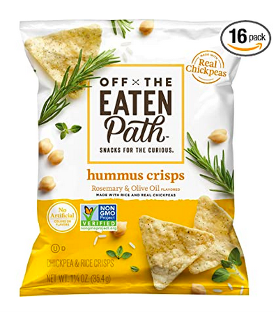 Get these Off The Eaten Path Hummus Chips, Rosemary & Olive Oil, 1.25oz (Pack of 16) for just $8.96 shipped when you clip the 20% off e-coupon and checkout through Subscribe & Save!
