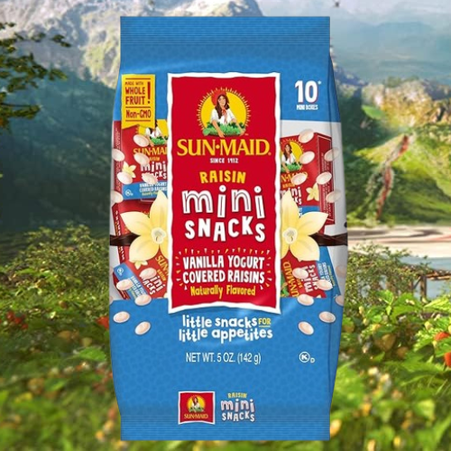 - VANILLA YOGURT COVERED RAISINS: Sun-dried California Raisins wrapped in a creamy blanket of vanilla yogurt