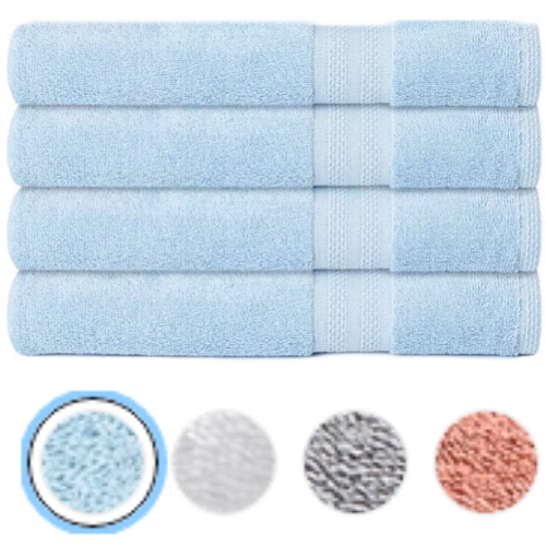 - Set includes: four bath towels (27″L x 52″W)
