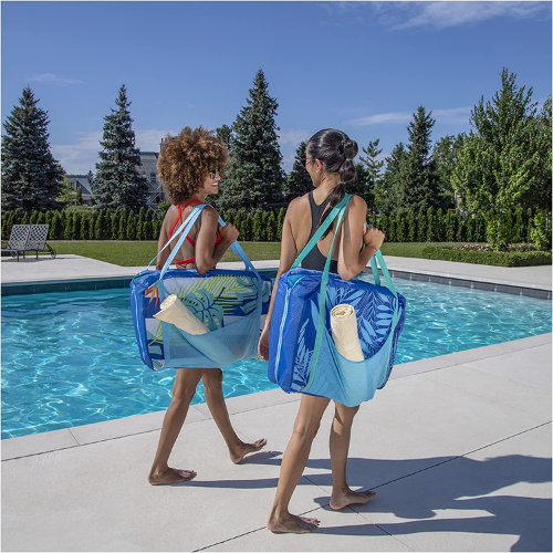 - MULTI-FUNCTIONAL DESIGN: The Pack-N-Float’s large breathable mesh exterior pocket and interior compartment carry all your swim essentials to and from the pool, beach, or lake. When you’re ready to relax, just unzip to transform the tote into an upright seated float.