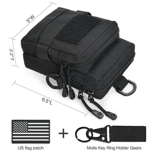 • Rich Internal Design: The two-way zippers allow you to quickly zip the edc pouch shut from either both sides;Tactical phone pouch Including two small loans, each bag has good storage space, suitable for phone, tactical pen, keychain, GPS device, digital cameras, medical and other tactical supplies