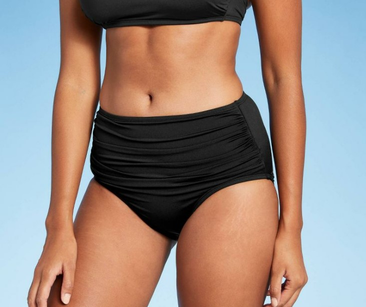 (1) Shirred High Coverage High Waist Bikini Bottom – $20