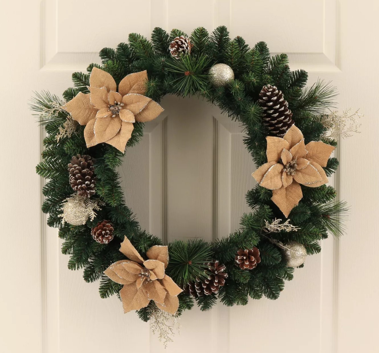 28-inch Christmas Burlap Poinsettia – $28 (reg. $40)
