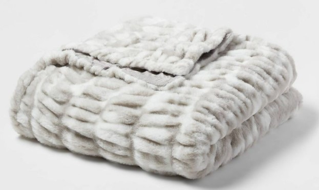 Ruched Faux Fur Throw Blanket Ivory/Gray – $35