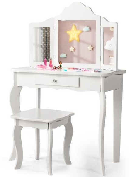 Kid Vanity Table Set with Tri-folding Mirror and Stool – $119.99 (reg. $260)