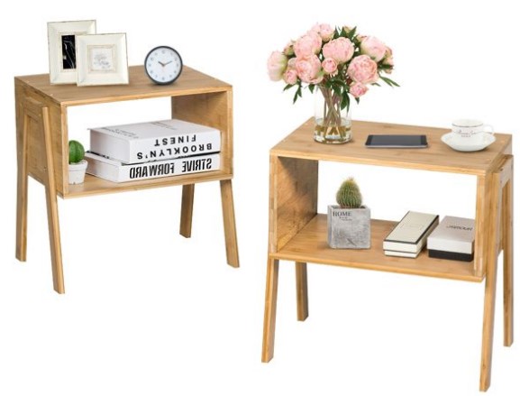 Set of 2 Bamboo Nightstand Stackable Sofa Table with Shelf – $79.99 (reg. $130)