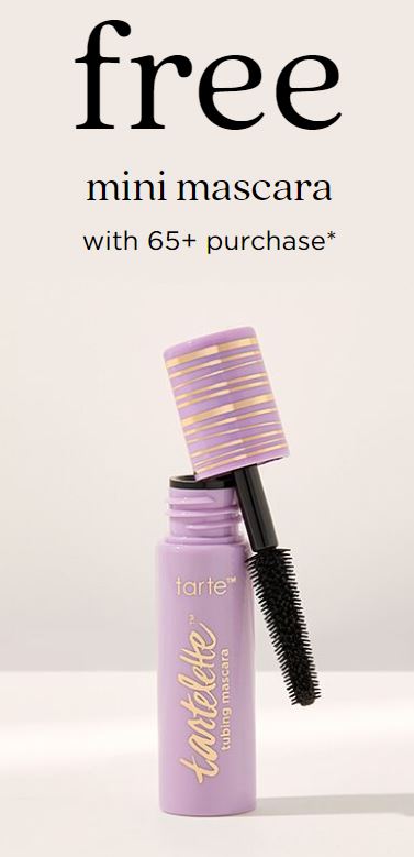 Even better, you can get a free Tarte deluxe mascara when you spend $65+! The freebie will automatically be added to your cart when your total (after discount) reaches $65.