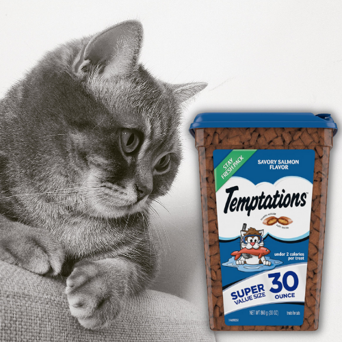 - Your cat can’t wait to get their paws on TEMPTATIONS Savory Salmon Flavor Crunchy Cat Treats