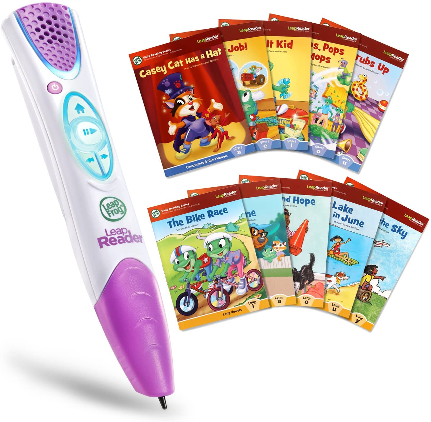 What You Get: Get the LeapReader Pen plus 10 early reading books. The pen works with the books to sound out letters and words.
