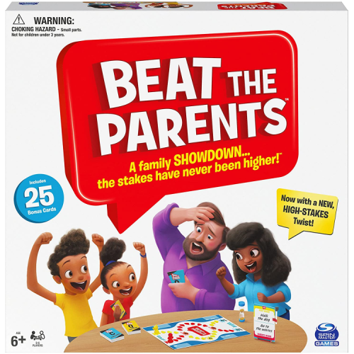 It’s kids vs parents in this fun-filled, action-packed showdown of trivia and challenges. For 2-6 players ages 6 and up. Amazon rating 4 1/2 stars.
