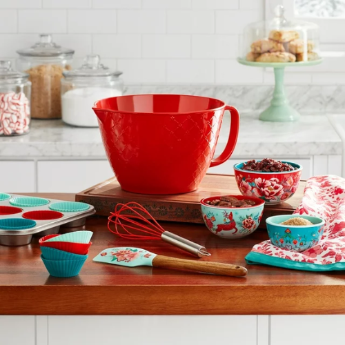 Hop over to Walmart and get a deal on The Pioneer Woman 18-Piece Merry Meadows Melamine Batter Bowl Set. Showcasing a gorgeous combination of vintage style and country charm, this versatile 18-piece cooking and baking utensils set will bring both functionality and beauty to your kitchen during any season. The batter bowl, prep bowls, whisk, and spatula will help you mix your ingredients while the 12 muffin cups offer a base for baking. You can also get this 13-Piece Wishful Winter variant for only $10.72!