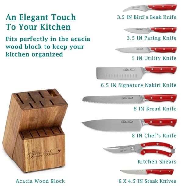 Right now, head to Walmart.com and score a nice discount on The Pioneer Woman Signature 14-Piece Stainless Steel Knife Block Set.