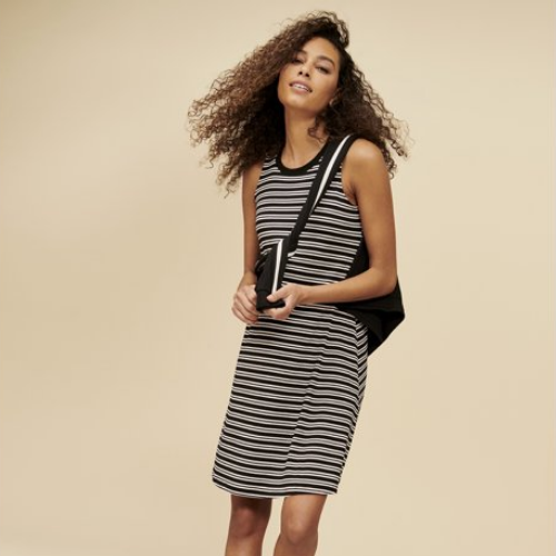 - Ribbed crew neck; swing silhouette