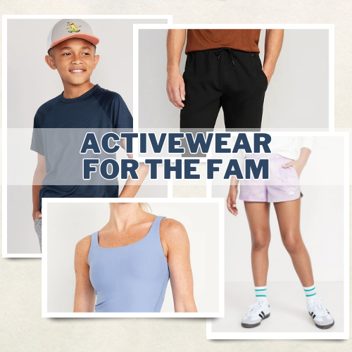 Hop over to Old Navy and get a deal on Activewear for the Fam. Gear up the entire family for active living with this stylish and comfortable activewear collection! From sleek leggings to moisture-wicking tops, this range is designed to keep everyone looking and feeling their best during workouts or everyday activities. Whether it’s yoga, running, or just a casual stroll, these are crafted with performance and style in mind.