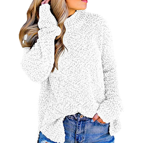 - Features: Women’s pullover sweater, long sleeve fuzzy warm top blouse, sherpa style, crew neck and side slit