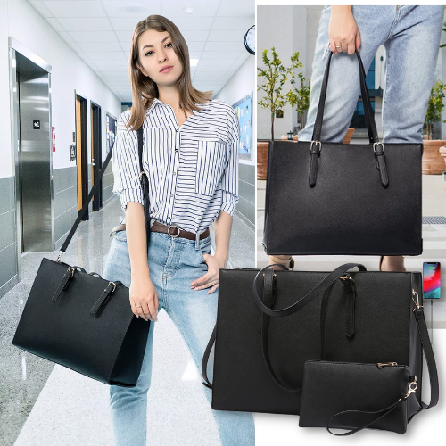 - Multi-pocket Design – Multiple pockets keep your belongings organized. The handbag structure consists of a 15.6-inch laptop pocket, an iPad pocket, a middle zipper pocket, an internal side zipper pocket, two large opening compartments, two small opening pockets, two pen pockets and an outer zipper pocket. And an external USB charging mouth.