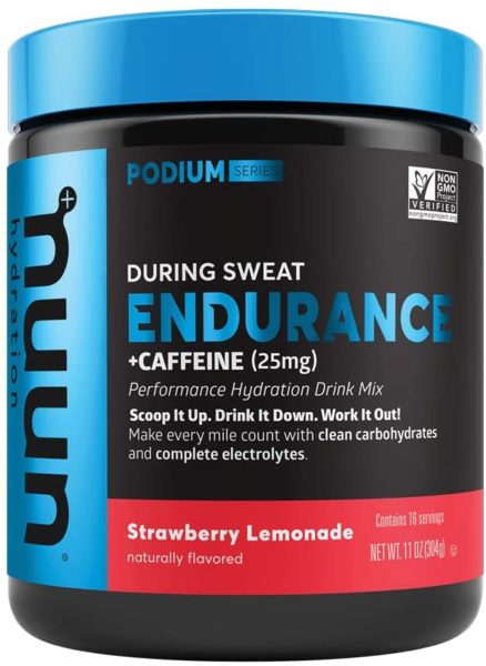 - Among the 3 drinks in canisters, the one with the most ratings is this 16-Serving Nuun Endurance Workout Support, Electrolytes & Carbohydrates, Strawberry Lemonade
