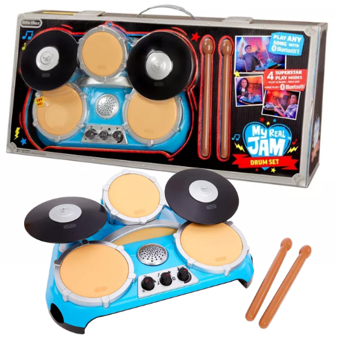 Hop over to Target and save 40% on Playsets. Just an idea, you can get this Little Tikes My Real Jam – Drum Set for only $26.99. Four play modes—Play with the Band, Free Play; Solo Jam; Play Any Song with Bluetooth —provides countless hours of musical fun. The realistically designed drum set comes with two drumsticks, while the package doubles as a reusable drum case, perfect for storing the drum set or for hitting the road as an aspiring musician.