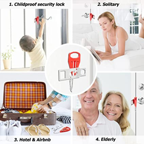 - Security and Privacy – This portable door lock provides you with extra security and privacy, greatly improving your security and preventing unauthorized entry, so the door can’t be opened from the outside, not even with a key; which is a great helper for you when you are on business and trips, or live alone.