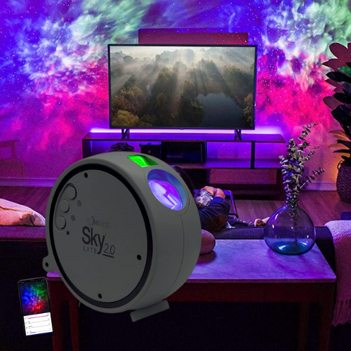 - Sky Lite 2.0 instantly projects a field of drifting GREEN stars against a transforming RGB nebula cloud (Patent Protected).