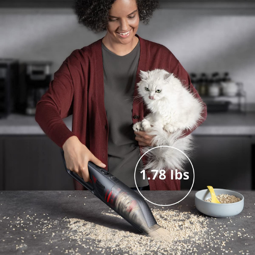 - Ultra-Lightweight: At 1.78 lbs (808 g), you can effortlessly clean places that you haven’t been able to before—like air vents, high shelves, or light fixtures.