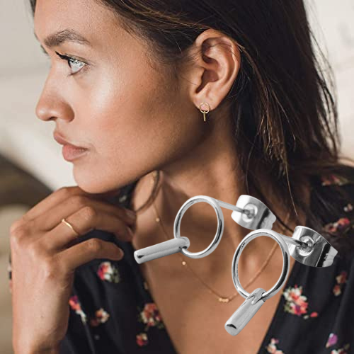 - DESIGN DETAILS: A petite sized pair of geometric earrings featuring a tiny bar loosely hanging from a small hoop. Gorgeous worn solo or alongside your favorite studs. Available in Gold, Rose Gold, or Silver.