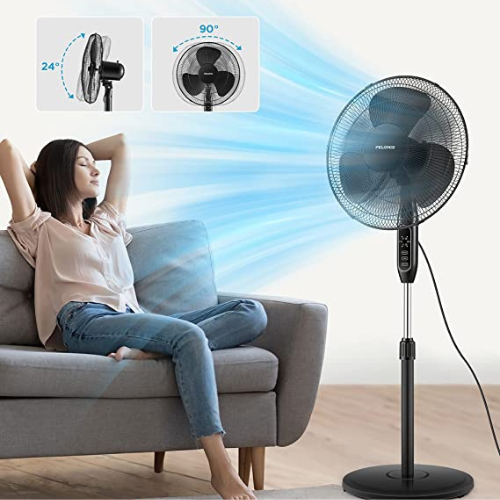 - NEW VERSION: Upgraded Pelonis pedestal fan is equipped with a more powerful motor and high-quality blades, it makes cooling more efficient and energy-saving. This standing fan with 3 speed settings and 7-hour timer with Auto Shut-off for wide area cooling in medium to large rooms. It generates strong airflow to boost the cooling effect while operating at a low noise level in any room in your home.