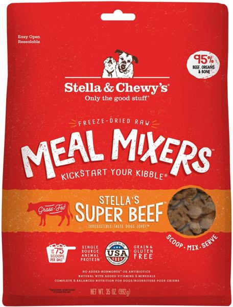 - 37% off and even more with Subscribe & Save for the Stella & Chewy’s Freeze-Dried Raw Stella’s Super Beef Meal Mixers Grain-Free Dog Food Topper, Beef, 2.18 lb
