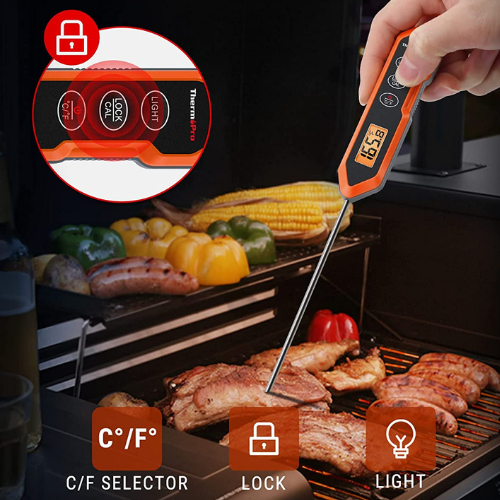 - Convenient Storage: Digital thermometer for cooking features a magnetic back to allow for placement on the side of a BBQ or use the hang hole for hooks