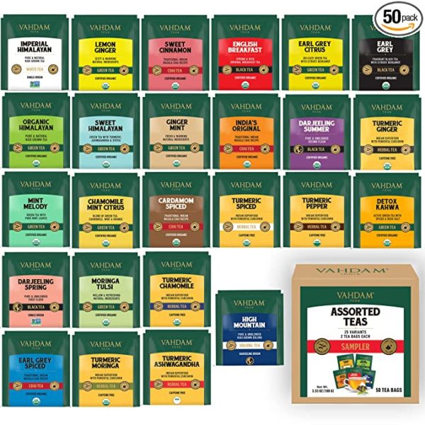 - VAHDAM, Assorted Tea Bag Sampler Gift Set – 8 Tea Flavors, 40 Tea Bags – 1 ,K+ FAB Ratings!
