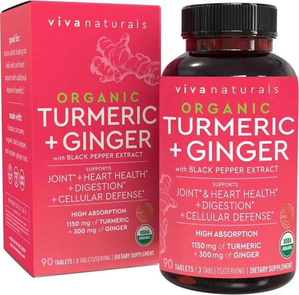 • Ginger + Turmeric Supplements – Turmeric Ginger Supplement With Black Pepper for Superior Absorption* – With an herb as potent as turmeric extract, you want to make sure you’re getting maximum results. Viva Naturals organic turmeric curcumin tablets are served with 15mg organic black pepper. Combined, turmeric and black pepper work like magic to help your body absorb and utilize curcumin more effectively. Only the best turmeric and ginger supplements will contain turmeric with black pepper.