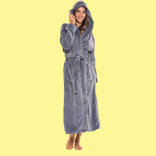 • FEEL GOOD FABRIC – Warm and plush, this long robe is made from 330 GSM flannel fleece to keep you warm no matter how low the temperature drops. Plus, there’s a cozy hood to keep your ears and neck warm.