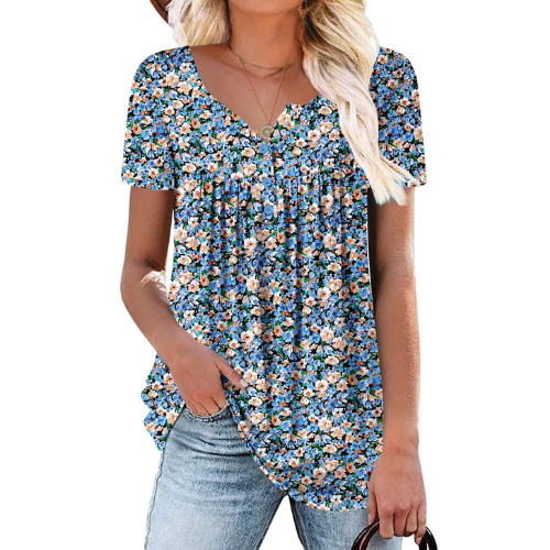 - Feature:Womens Casual V neck short sleeve blouse tops, floral print,ruffle design,loose fit,trendy and elegant.