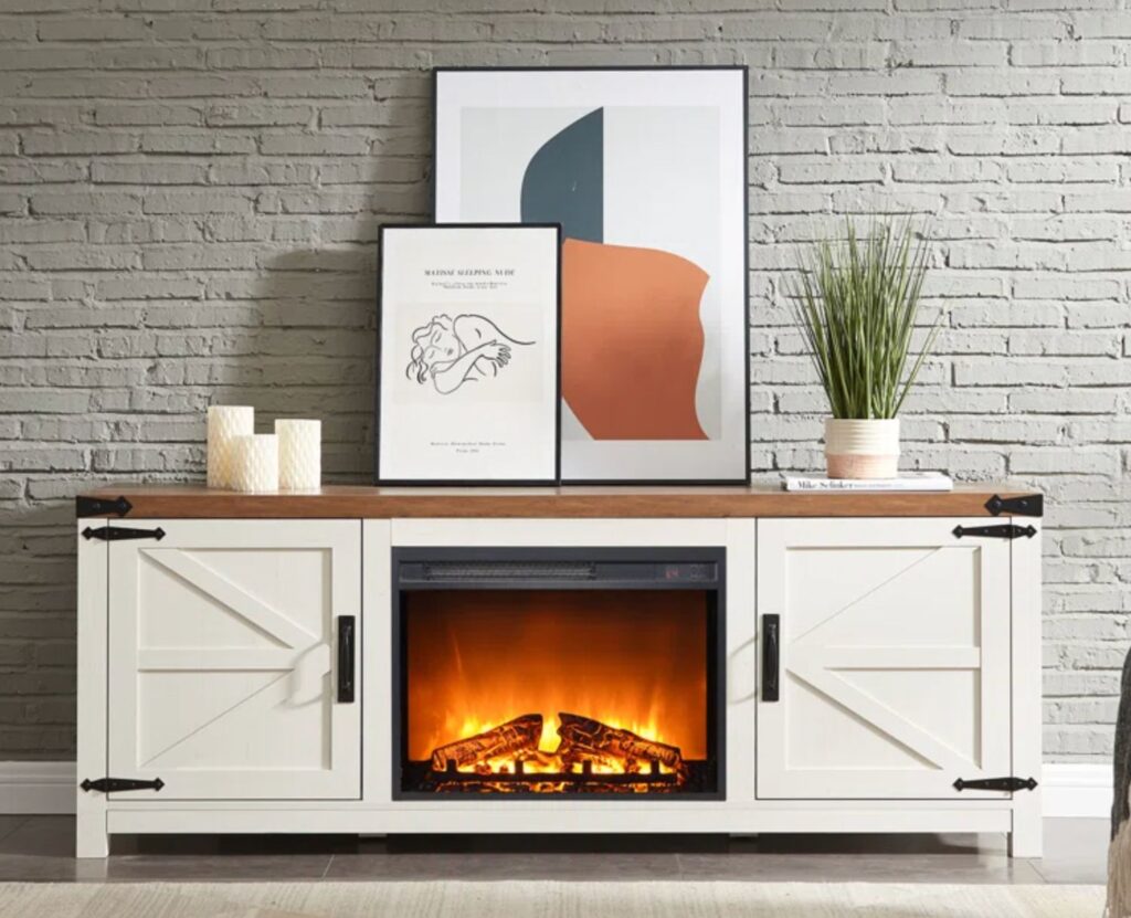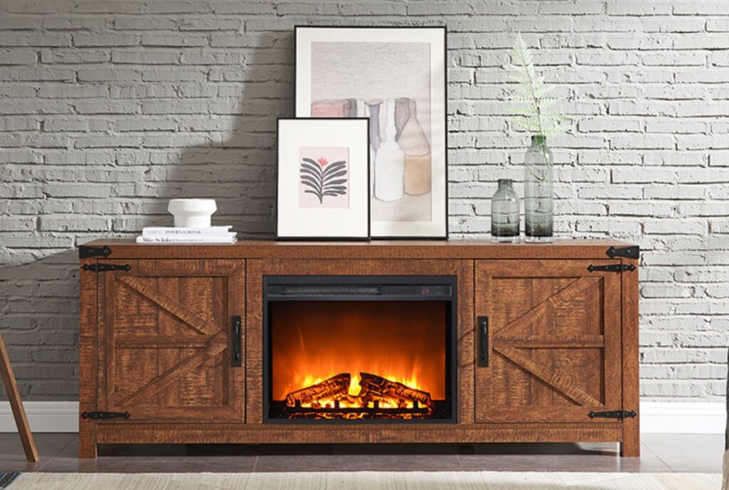 Farmhouse Barn Door Media Console with 23″ Electric Fireplace – $299.99 (reg. $429.99)