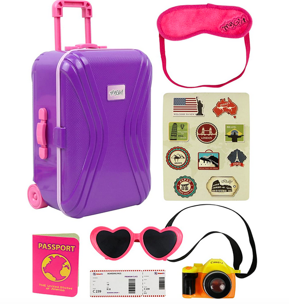Get this Click N’ Play 18” Doll Travel Carry On Suitcase Luggage 7 Piece Set for just $10.79!