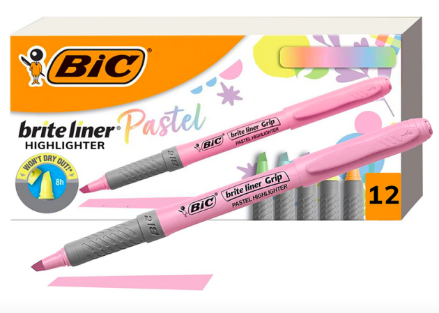 Get this BIC Brite Liner Grip Pastel Highlighter Set, Chisel Tip, 12-Count Pack for only $5.94!