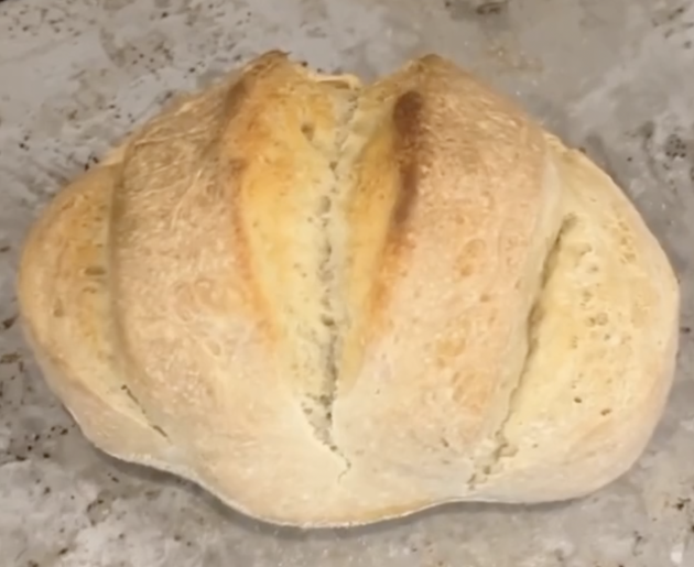 Here’s my first loaf. I took it out of the oven a little earlier than I should have, but it was still delicious. The next loaf (that I didn’t get a photo of), I baked longer and it was crustier. All in all, I’d recommend this recipe. Once I got the hang of it, it was really easy to do and it only takes a few ingredients!
