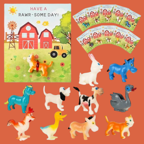 - Farm Valentine’s Cards and farm animal toys: The designed phrases on the cards are” HAVE A RAWR-SOME DAY! Perfect Combination of Card and farm animal toys, The are such a cute way to share valentine’s day gift to their friends, Pass that joy on to their friends.