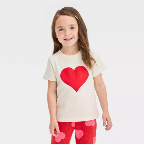 Hop over to Target and get a deal on these Valentine’s Day Outfits for the Fam. Just an idea, you can get this Toddler Girls’ Heart Short Sleeve T-Shirt – Cat & Jack, Off-White for only $8. Tailored in a regular fit, this short-sleeve T-shirt is crafted from midweight fabric for all-day cool comfort, while the below-waist length gives them the option of wearing it tucked in or untucked. Designed in a cream hue, this crewneck tee features a big heart graphic in red on the front for sweet style. Thinking of Valentine’s activities with the kids? Here are 18 Easy Valentine’s Day Ideas for Kids (Crafts & More).