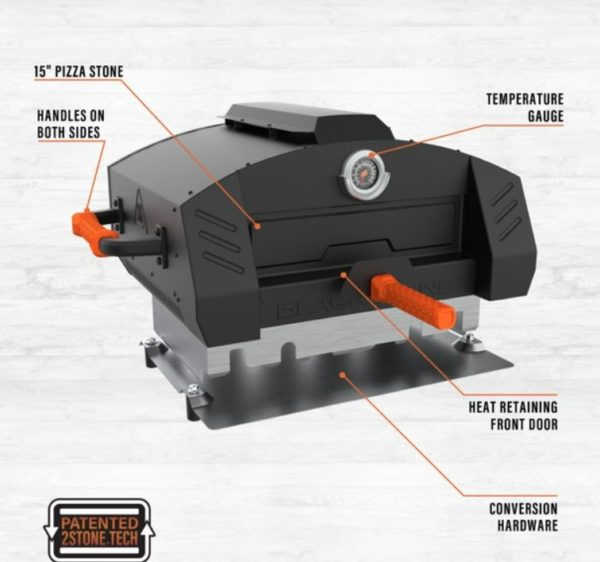 - Convert any standard Blackstone 22″ Tabletop Griddle into a pizza oven
